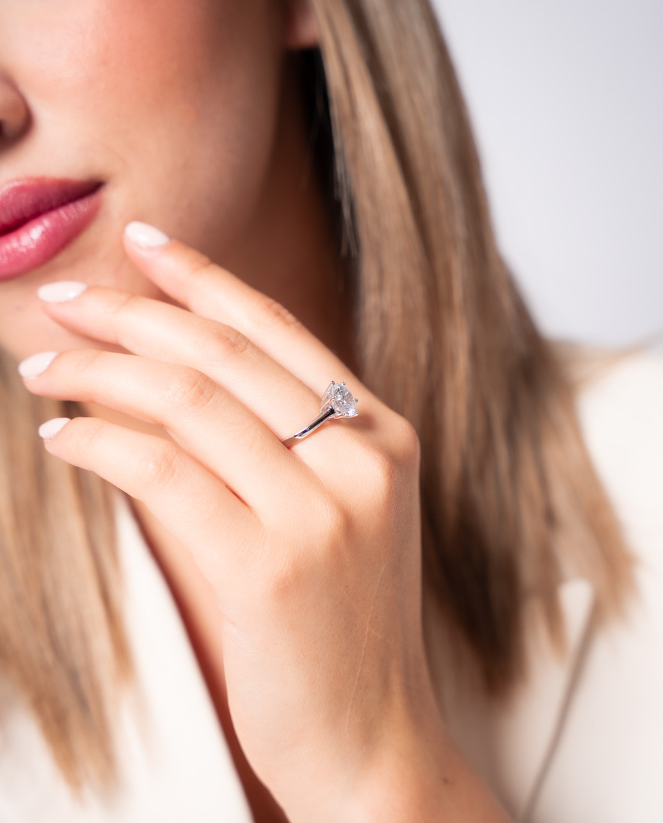 Anillo solitario circonita brillo de plata de ley 925 bañada en rodio