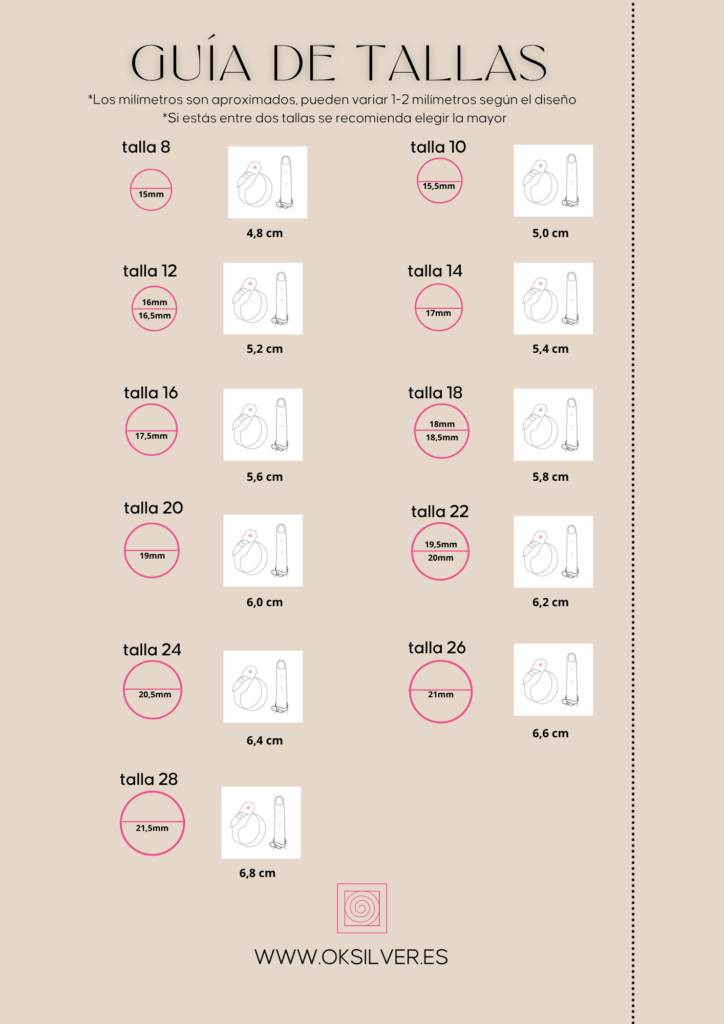 Además, cabe destacar que la guía de tallas varía en función del país. Como ya imaginarás, en OKsilver trabajamos con las tallas españolas.
