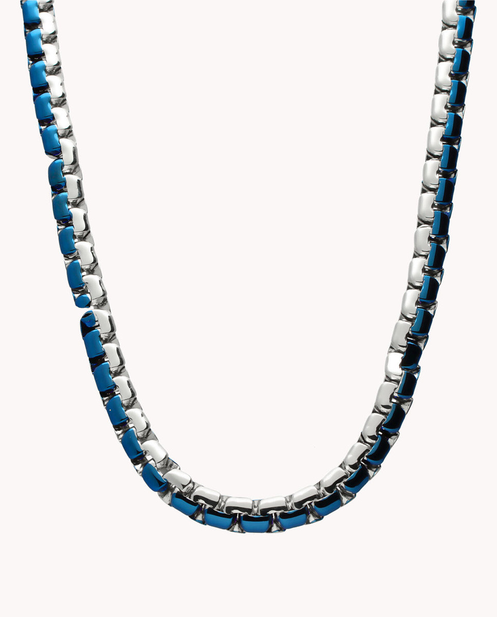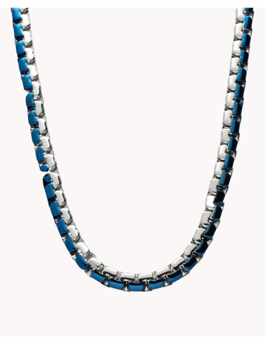 Cadena de acero inoxidable con IP azúl de 48 cms de largo más 5 cms de alargador, cierre de mosquetón.