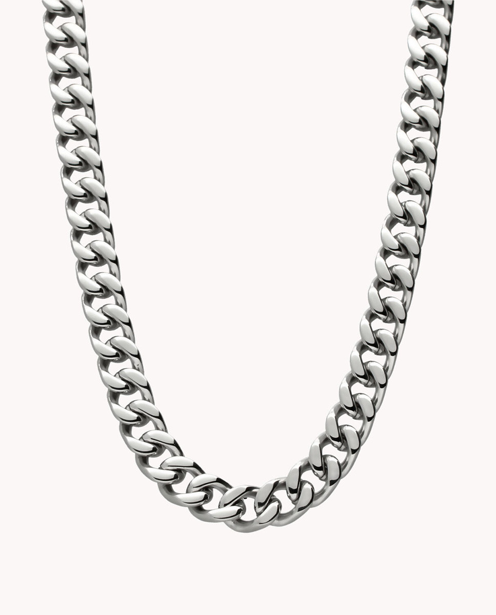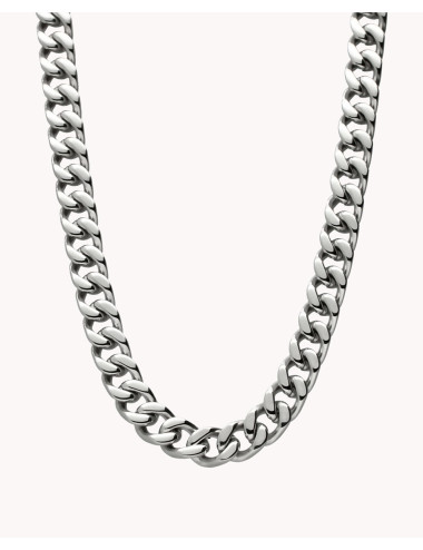 Cadena de acero inoxidable de eslabón tipo barbado de 8 mm de grosor y 50 cms de largo con cierre de mosquetón.