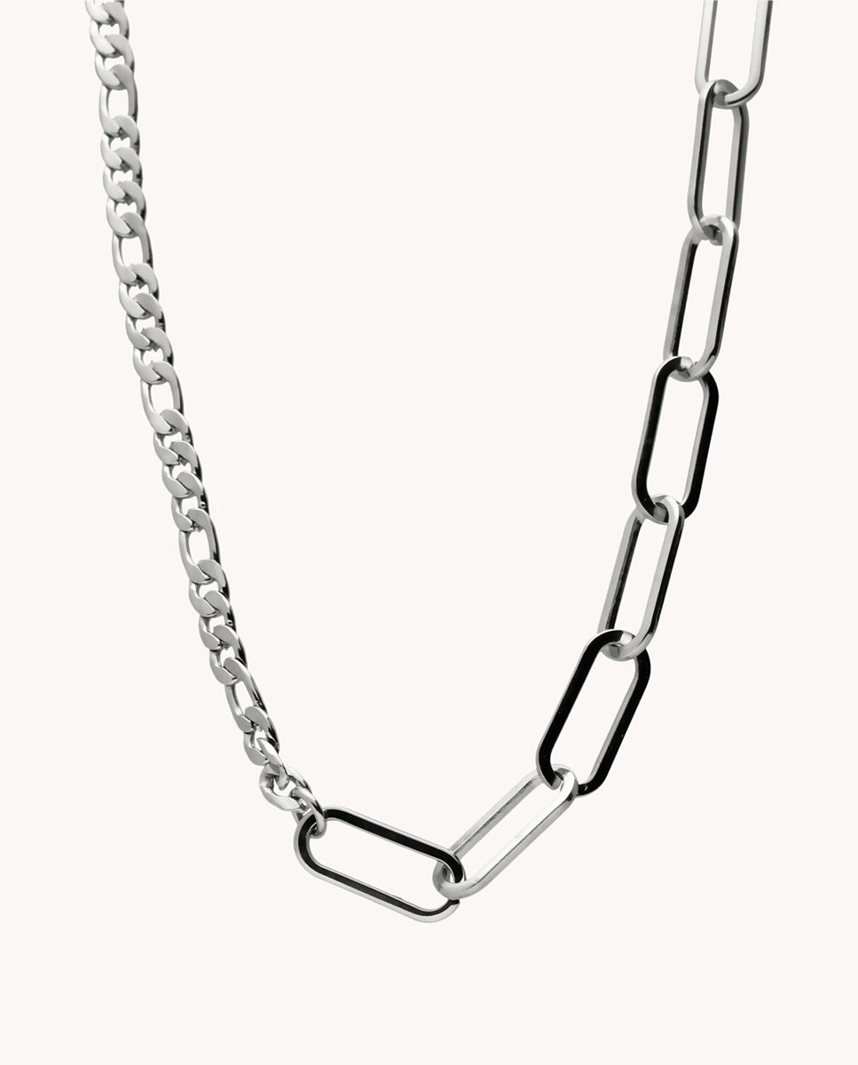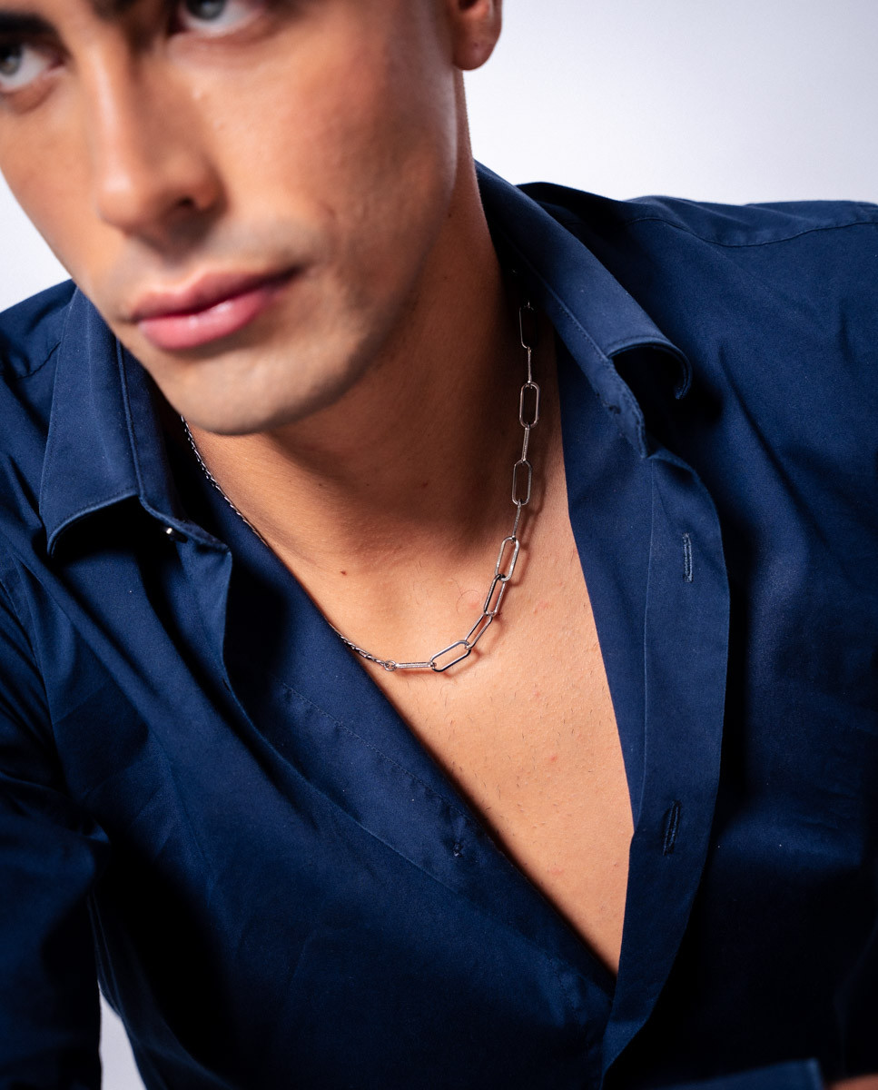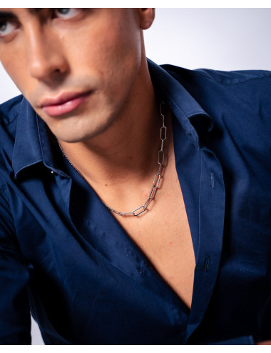 Cadena de acero inoxidable con eslabones combinados, ancho de 4 mm y 10 mm, largo de 50 cms y cierre de mosquetón.