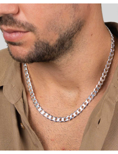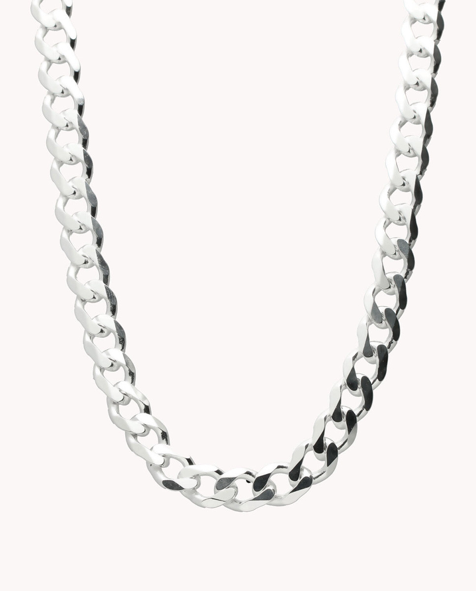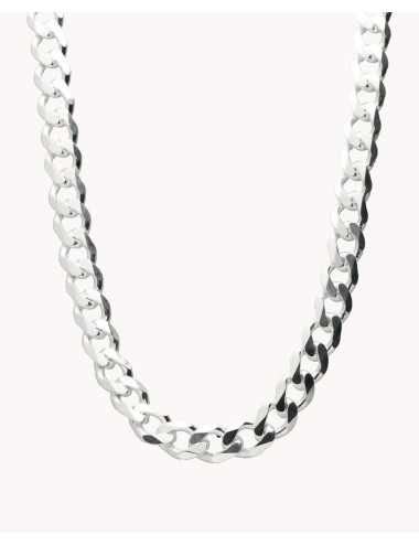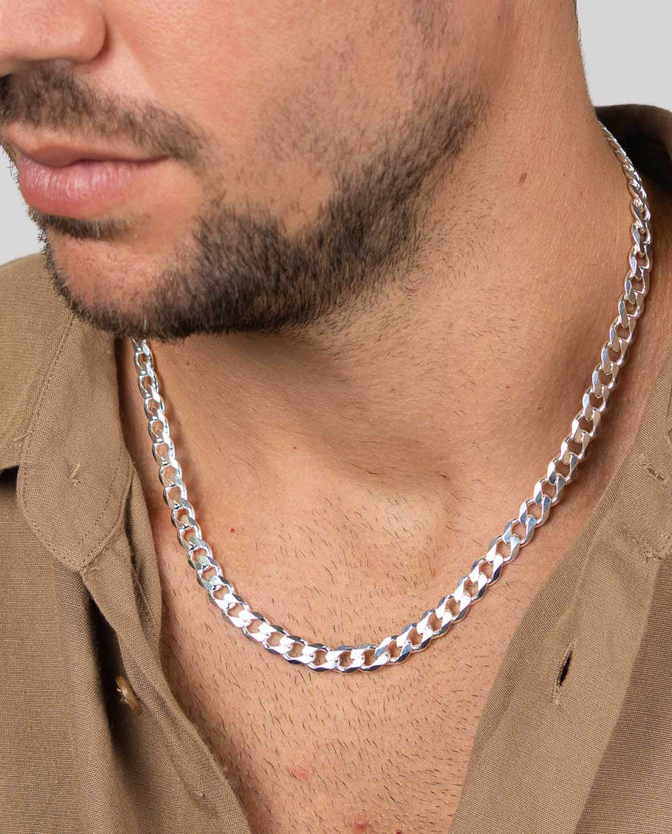 Cadena de plata de ley 925 con eslabón barbado de 8 mm de ancho, cierre mosquetón y 50 cms de largo