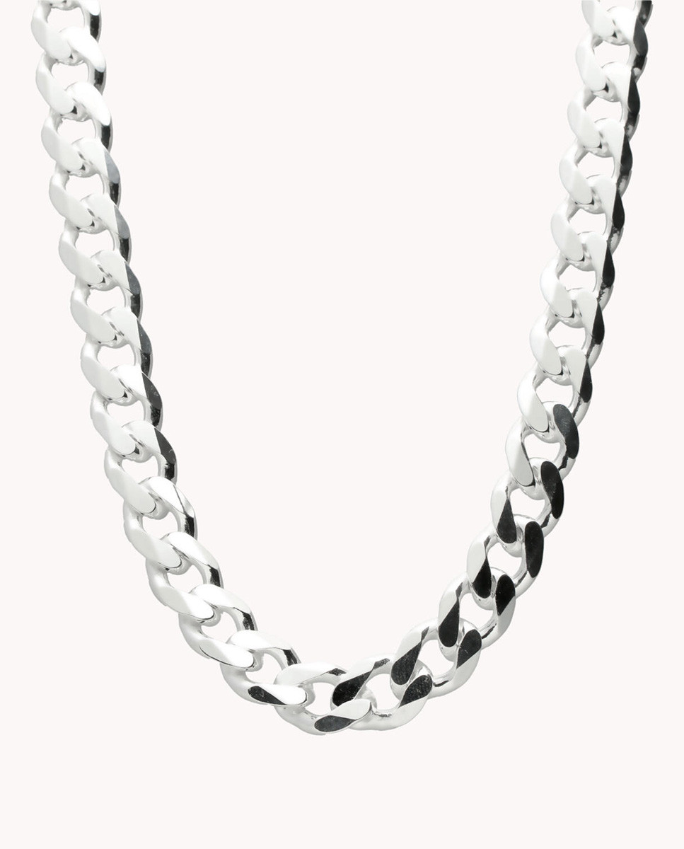 Cadena de plata de ley 925 con eslabón barbado de 9,20 mm de ancho, cierre mosquetón y 60 cms de largo
