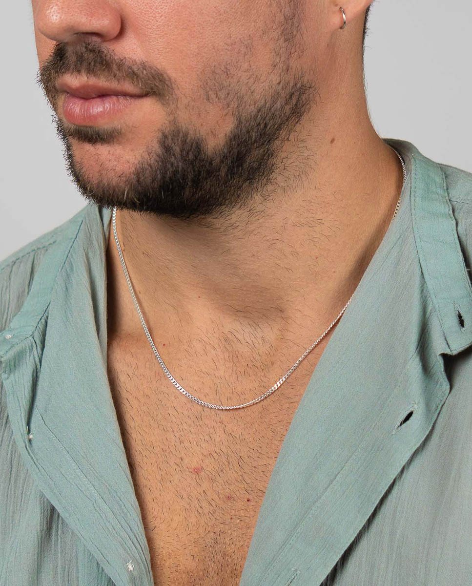 Cadena de plata de ley 925 de eslabón tipo barbado de 2 mm de grosor y 50 cms de largo con cierre de mosquetón.