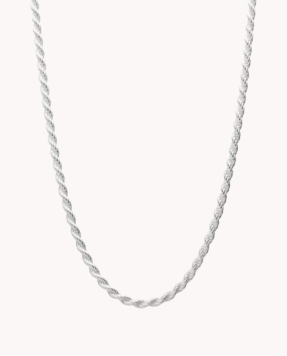 Cadena de plata de ley 925 con eslabón tipo cordón macizo de 2,5 mm de ancho y 50 cms de largo, cierre de mosquetón.