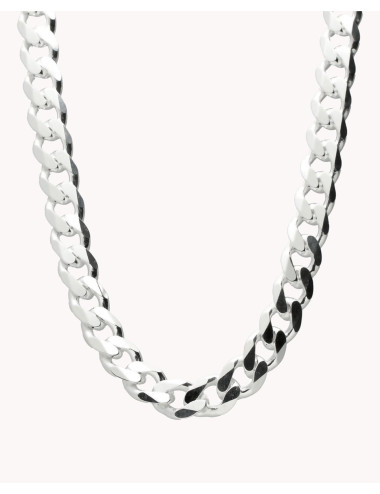 Cadena de plata de ley 925 con eslabón barbado de 9,20 mm de ancho, cierre mosquetón y 50 cms de largo