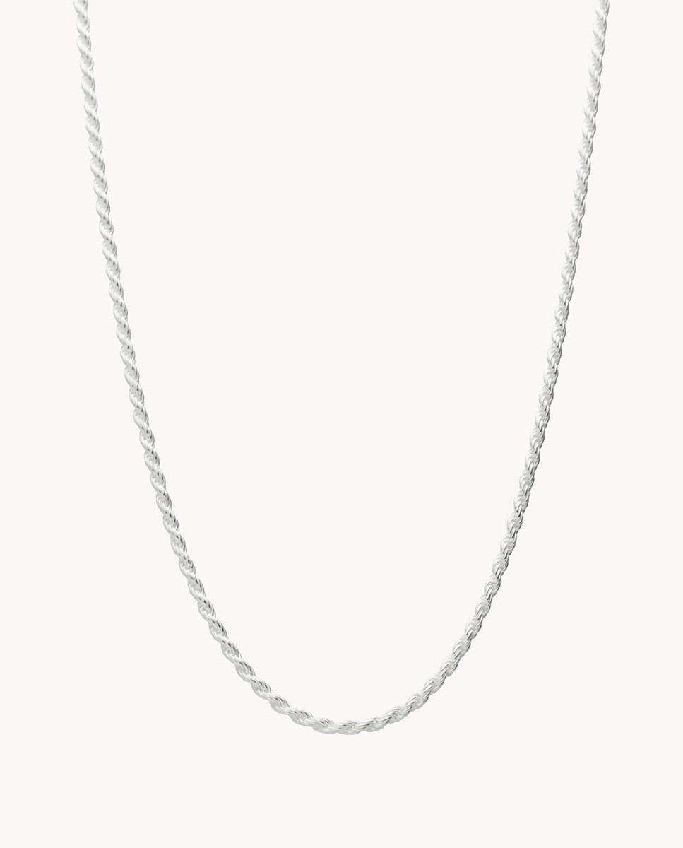 Cadena de plata de ley 925 con eslabón tipo cordón macizo de 2,5 mm de ancho y 60 cms de largo, cierre de mosquetón.