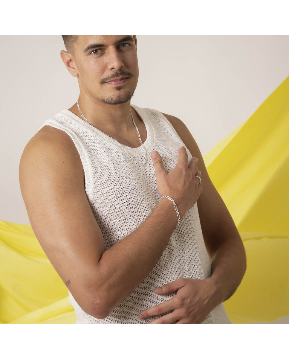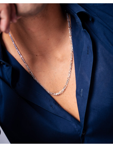Cadena de plata de ley 925 con eslabón tipo cartier de 4,5 mm de grosor y 60 cms de largo con cierre de mosquetón.