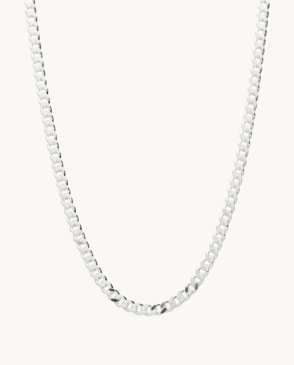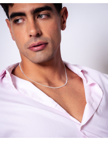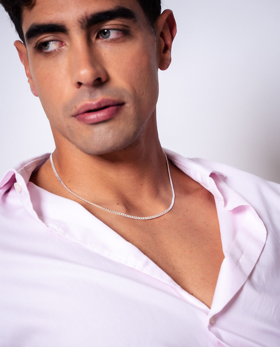 Cadena de plata de ley 925 de eslabón tipo barbado de 3 mm de grosor y 50 cms de largo con cierre de mosquetón.