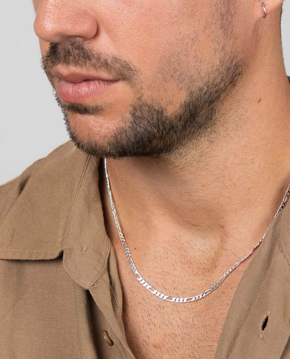 Cadena de plata de ley 925 con eslabón tipo cartier de 3 mm de grosor y 50 cms de largo con cierre de mosquetón.