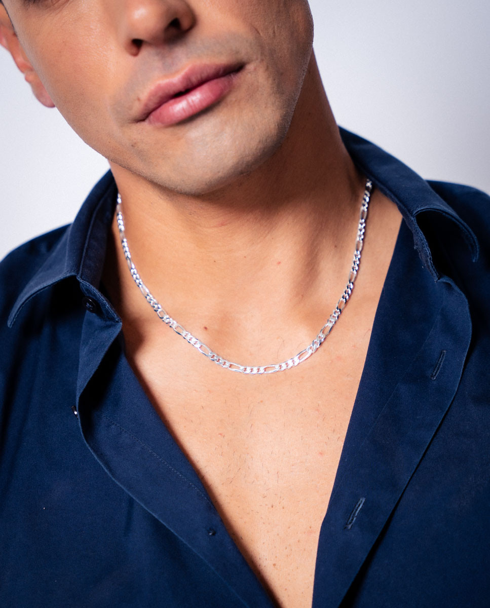 Cadena de plata de ley 925 con eslabón tipo cartier de 4,5 mm de grosor y 50 cms de largo con cierre de mosquetón.