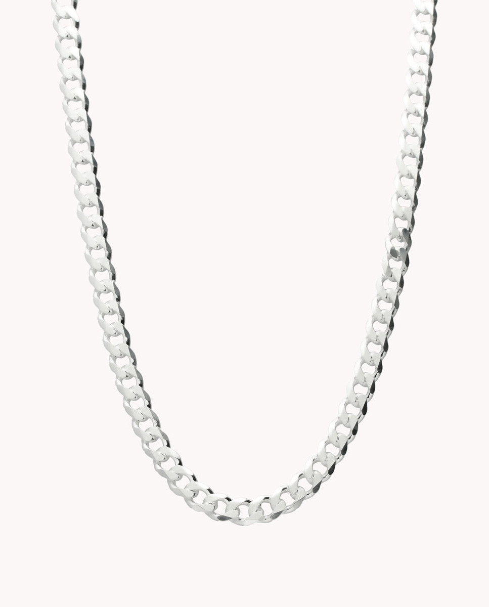 Cadena de plata de ley 925 con eslabón barbado de 4,3 mm de ancho, cierre mosquetón y 50 cms de largo
