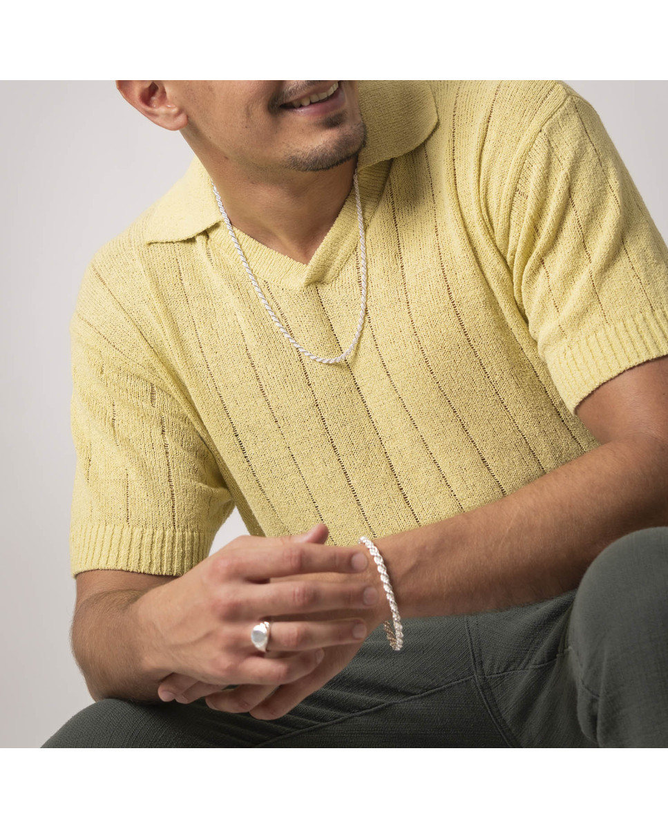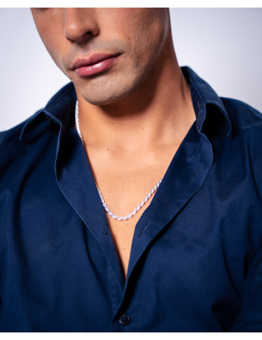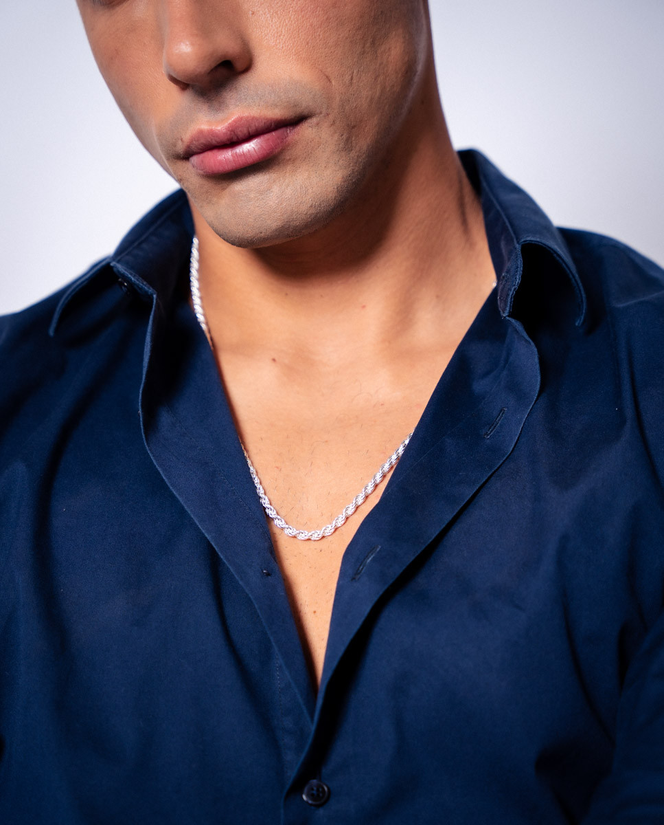 Cadena de plata de ley 925 con eslabón tipo cordón macizo de 4 mm de ancho y 60 cms de largo, cierre de mosquetón.