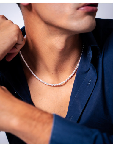 Cadena de plata de ley 925 con eslabón tipo cordón macizo de 4 mm de ancho y 50 cms de largo, cierre de mosquetón.