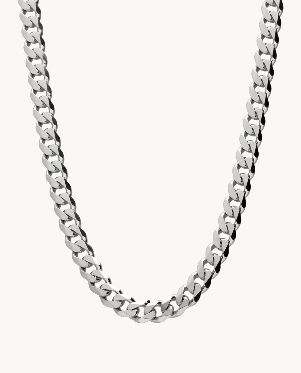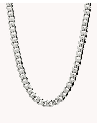 Cadena de plata de ley 925 bañada en rodio con eslabón tipo barbado de 5,7 mm de ancho y 60 cms de largo, cierre de mosquetón.