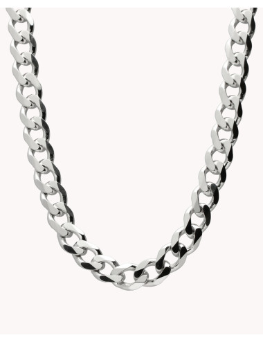 Cadena de plata de ley 925 bañada en rodio con eslabón tipo barbado de 7,5 mm de ancho y 50 cms de largo, cierre de mosquetón.