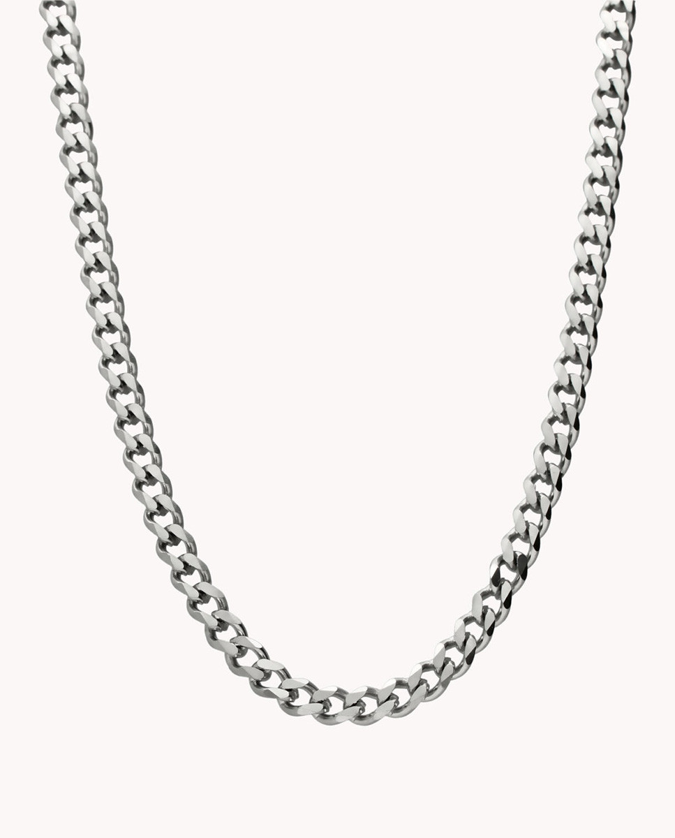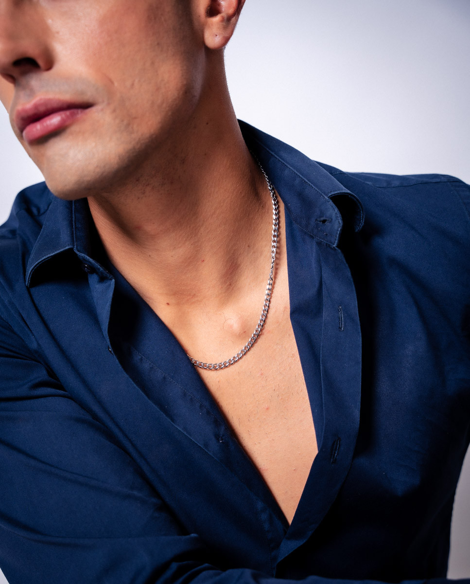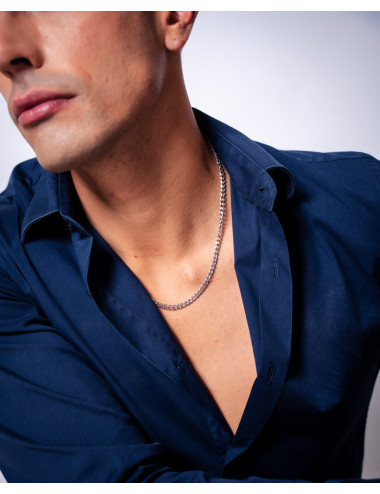 Cadena de acero inoxidable con eslabón tipo barbado de 4 mm de ancho, largo de 50 cms y cierre de mosquetón.
