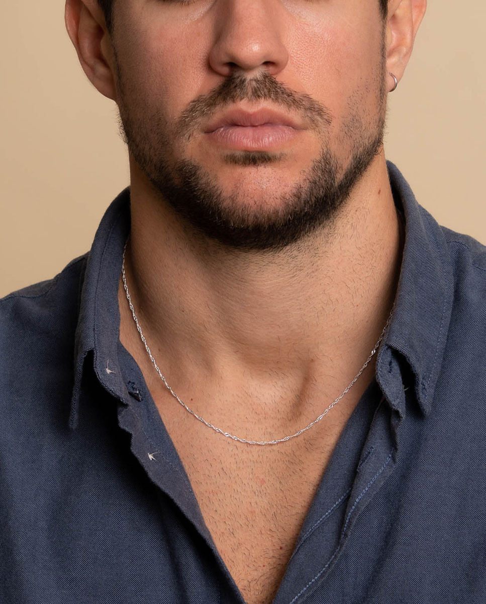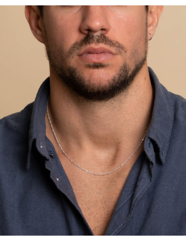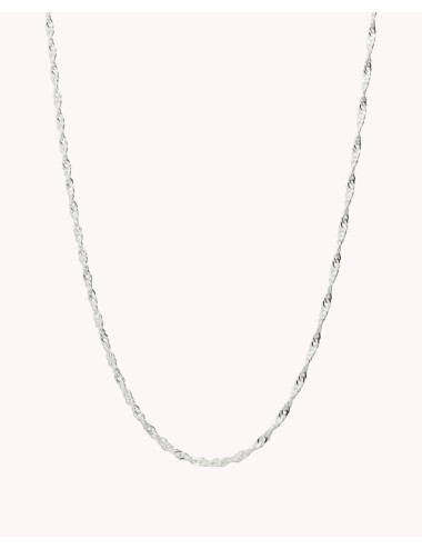 Cadena de plata de ley 925 con eslabón tipo singapur de 1,75 mm de ancho y 50 cms de largo, cierre tipo reasa.