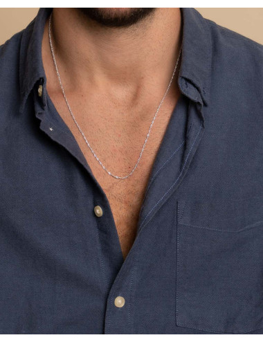 Cadena de plata de ley 925 con eslabón tipo singapur de 1,75 mm de ancho y 60 cms de largo, cierre tipo reasa.