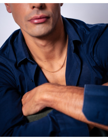 Cadena de plata de ley 925 bañada en oro de 18K con eslabón tipo barbado de 3 mm de ancho y 50 cms de largo, cierre de mosquetón.