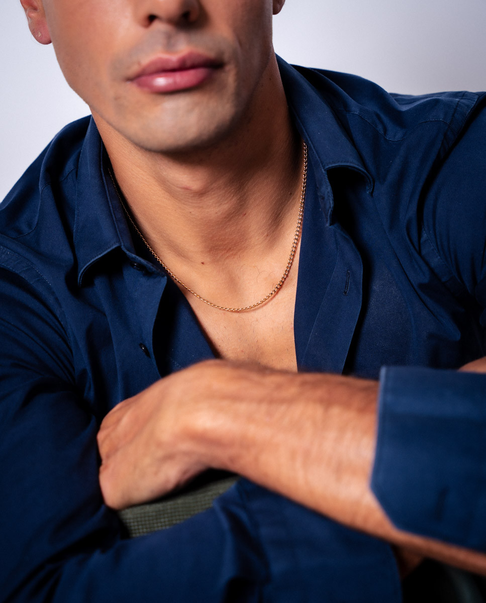 Cadena barbada fina 50cm de plata de ley 925 bañada en oro