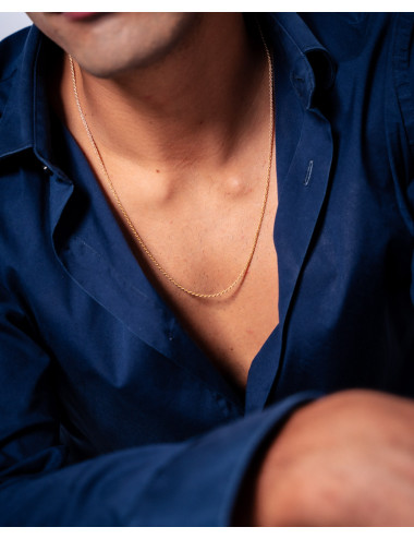 Cadena de plata de ley 925 bañada en oro con eslabón tipo cordón macizo de 1,50 mm de ancho y 60 cms de largo, cierre de mosquetón.