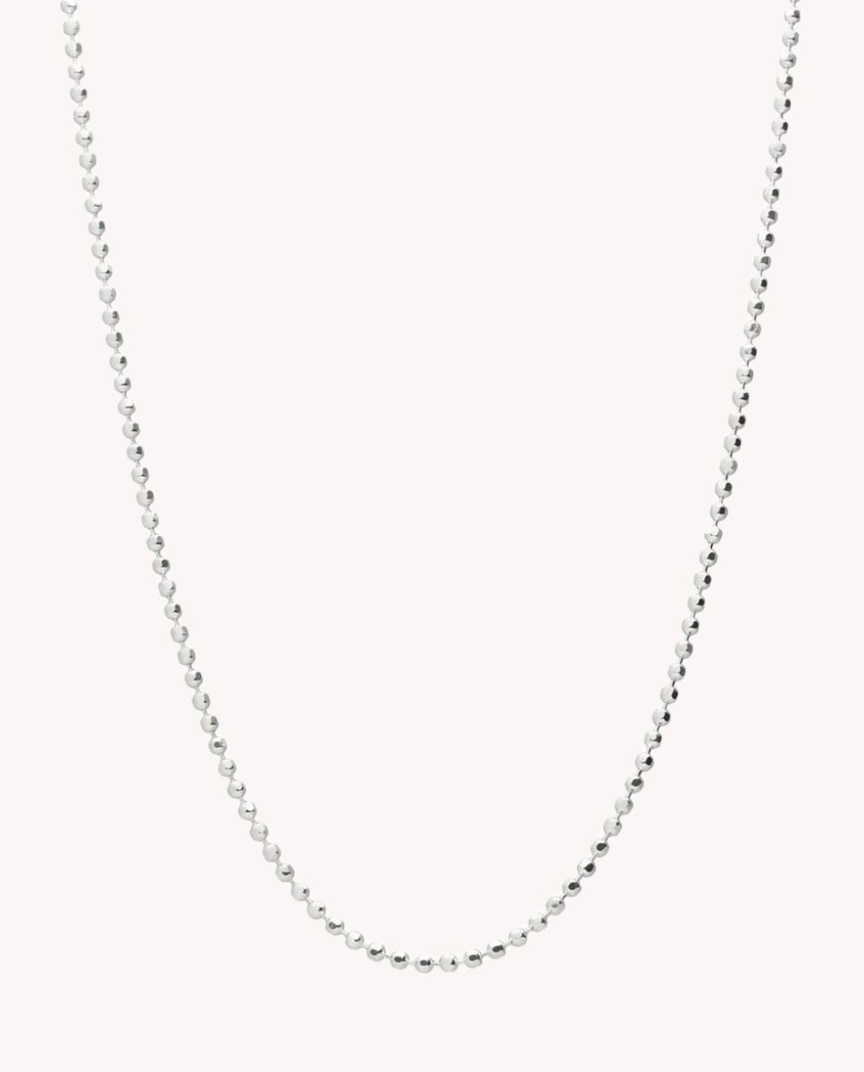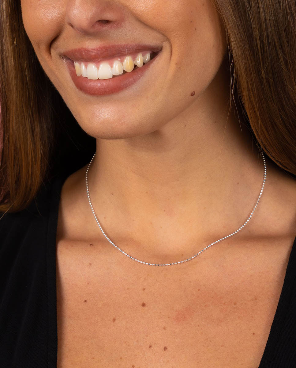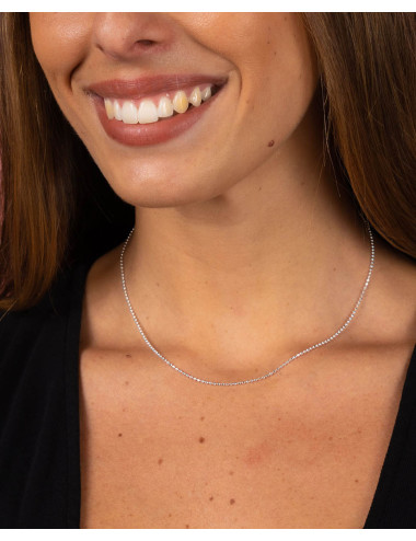 Cadena de plata de ley 925 con eslabón de bolitas lapidadas de 1,5 mm de 40 cms de largo y cierre mosquetón