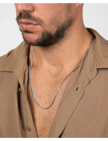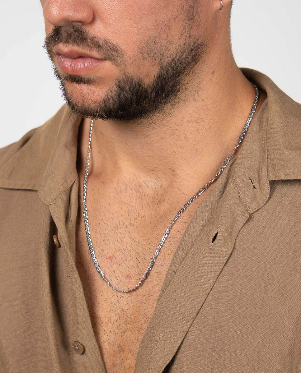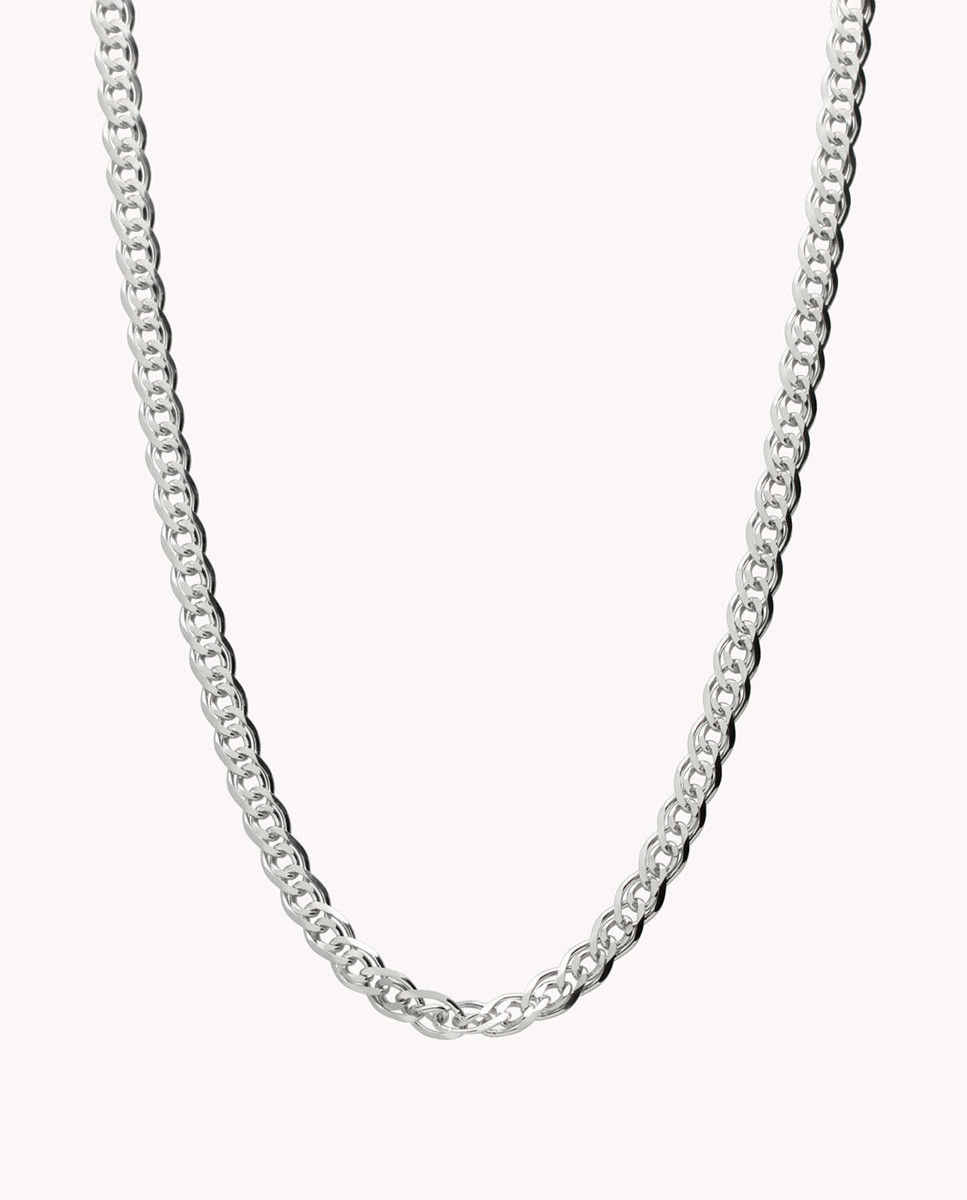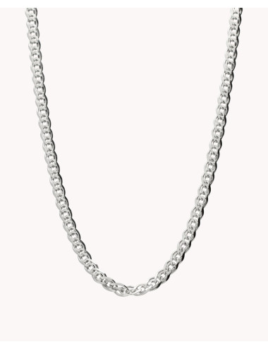 Cadena de plata de ley 925 bañada en rodio con eslabón tipo barbado doble de 3,56 mm de ancho y 60 cms de largo, cierre de mosquetón.