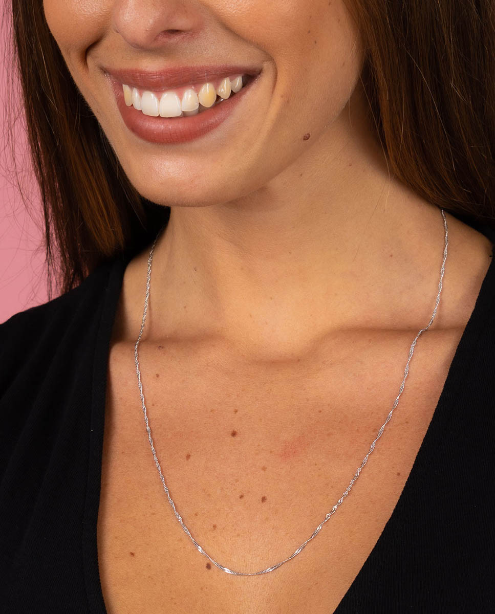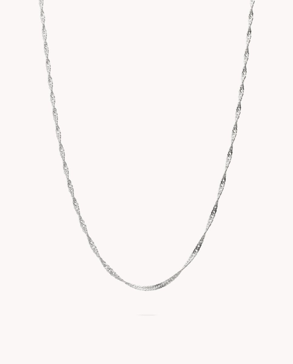 Cadena de plata de ley 925 bañada en rodio con eslabón tipo singapur de 1,5 mm de ancho y 60 cms de largo, cierre de reasa.