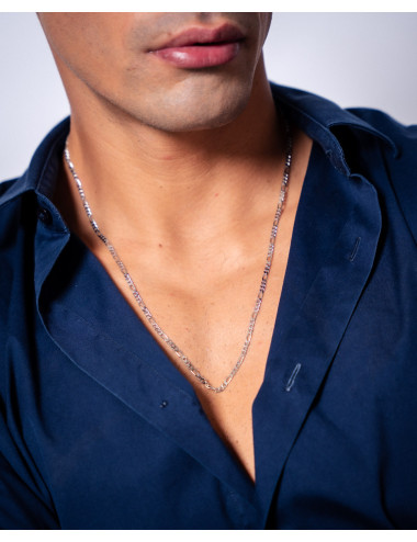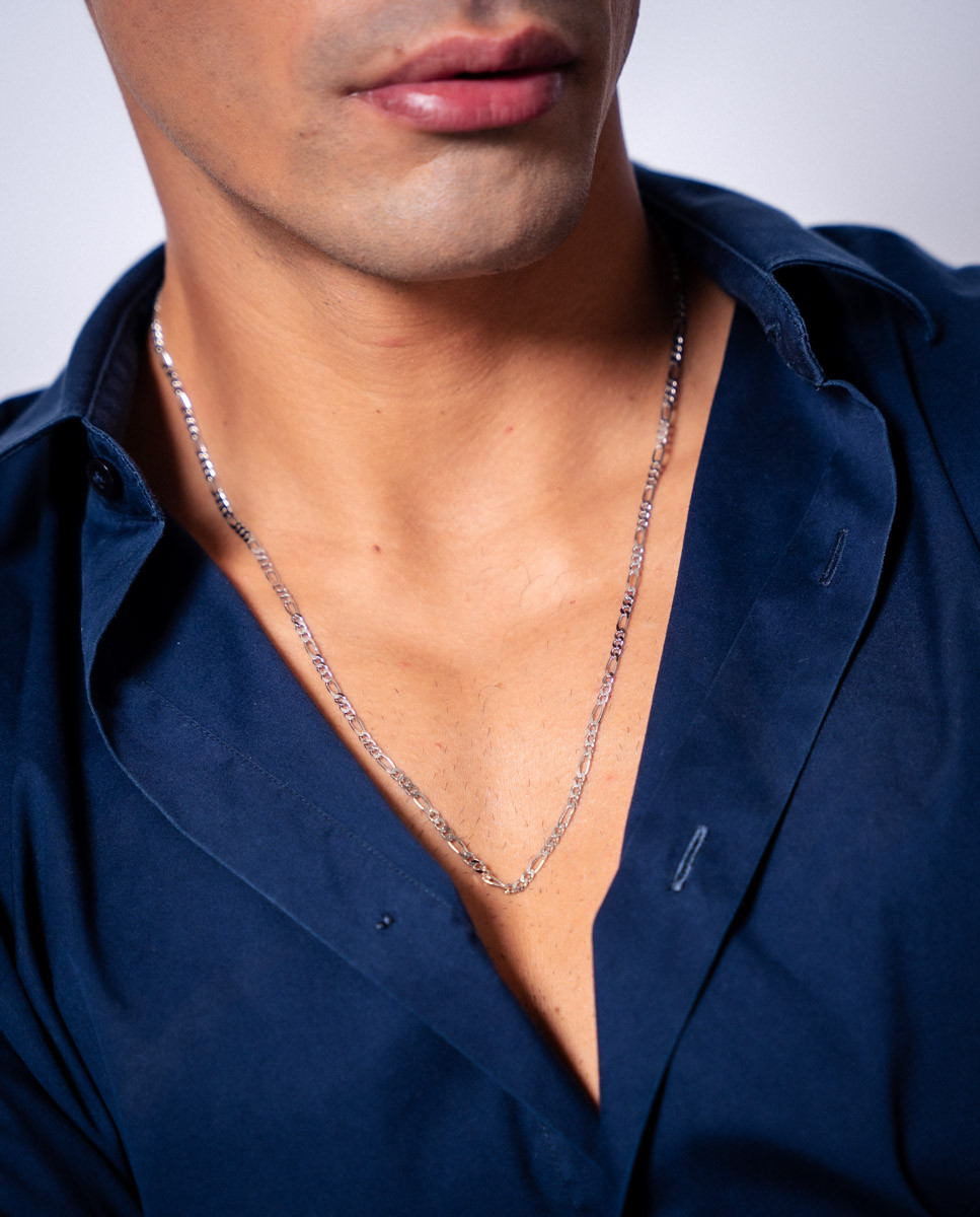 Cadena de plata de ley 925 bañada en rodio con eslabón tipo cartier de 3,4 mm de ancho y 60 cms de largo, cierre de mosquetón.
