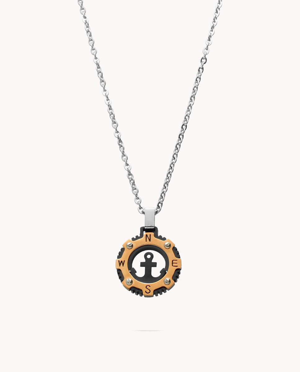 Colgante de acero inoxidable tricolor con brújula y ancla