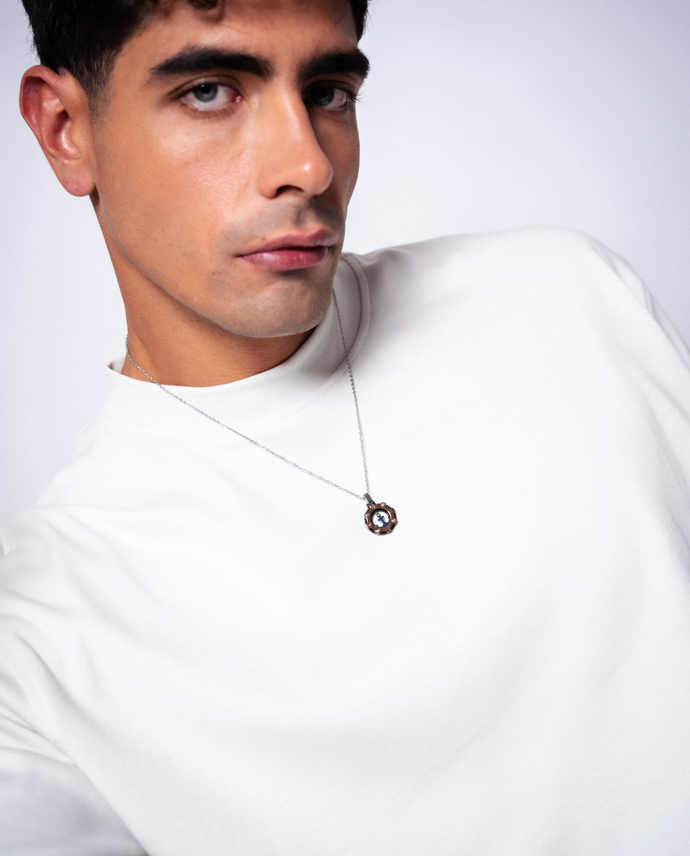 COLGANTE DE HOMBRE OK SILVER DE ACERO INOXIDABLE TRICOLOR CON BRÚJULA Y ANCLA