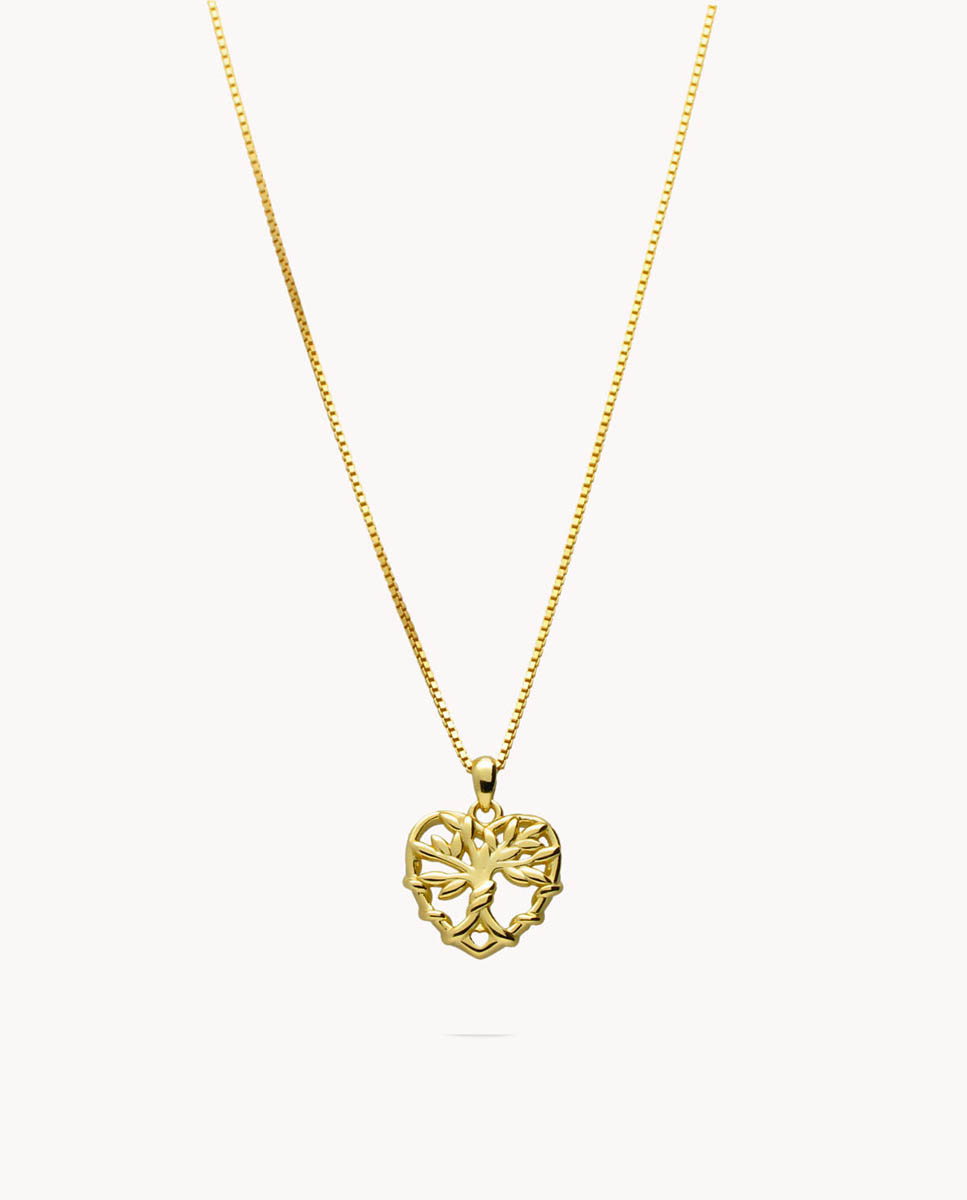 Colgante árbol de la vida en corazón de plata de ley 925 bañada en oro