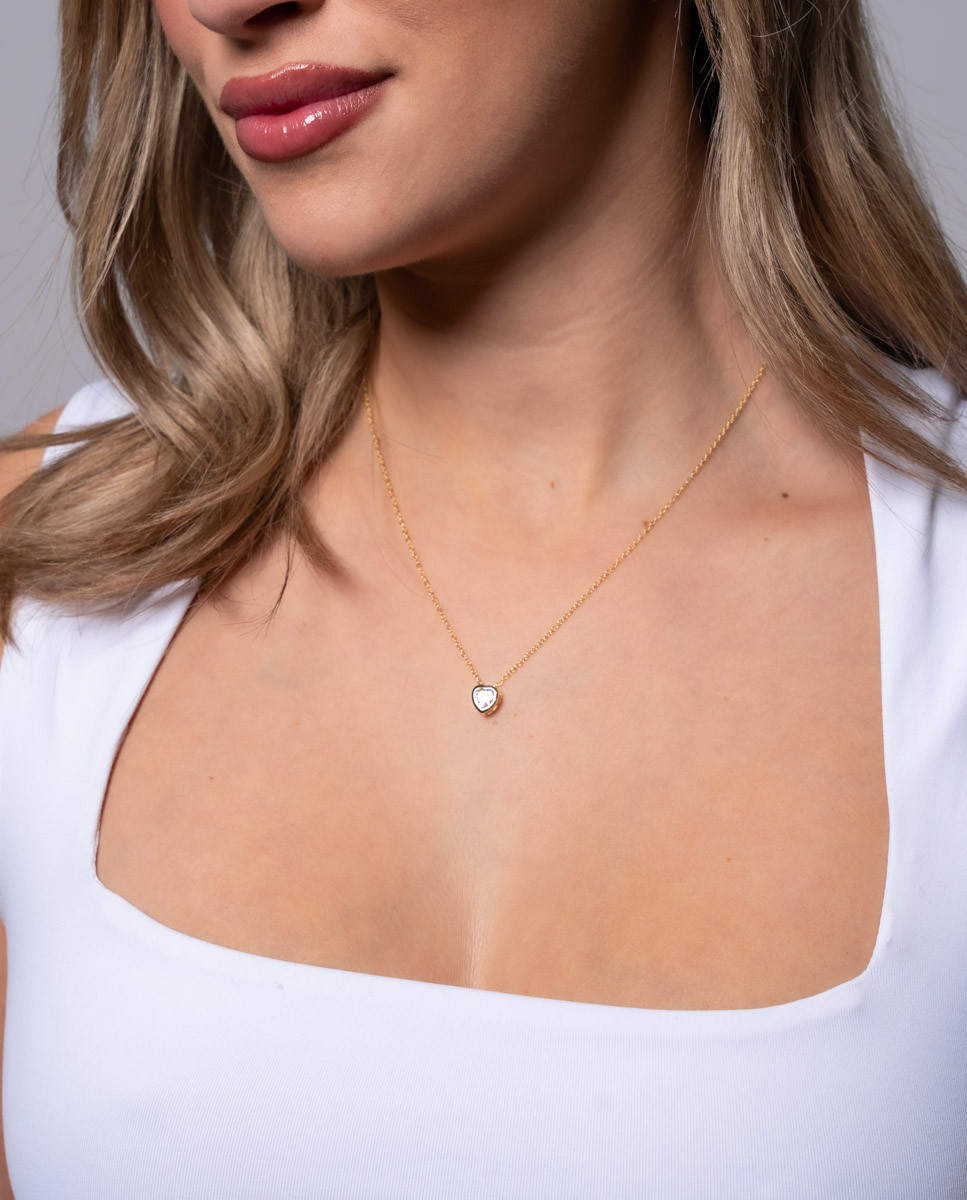 Colgante corazón solitario de plata de ley 925 bañada en oro