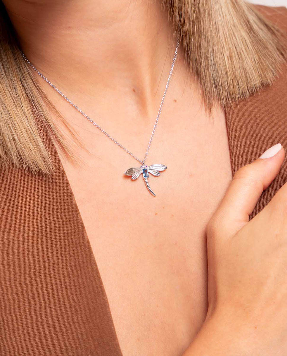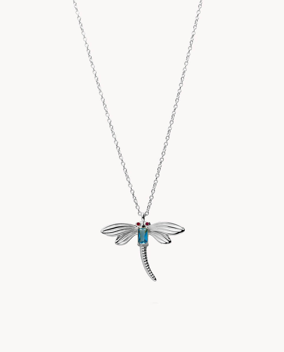 Colgante libélula amuleto de plata de ley 925 bañada en rodio