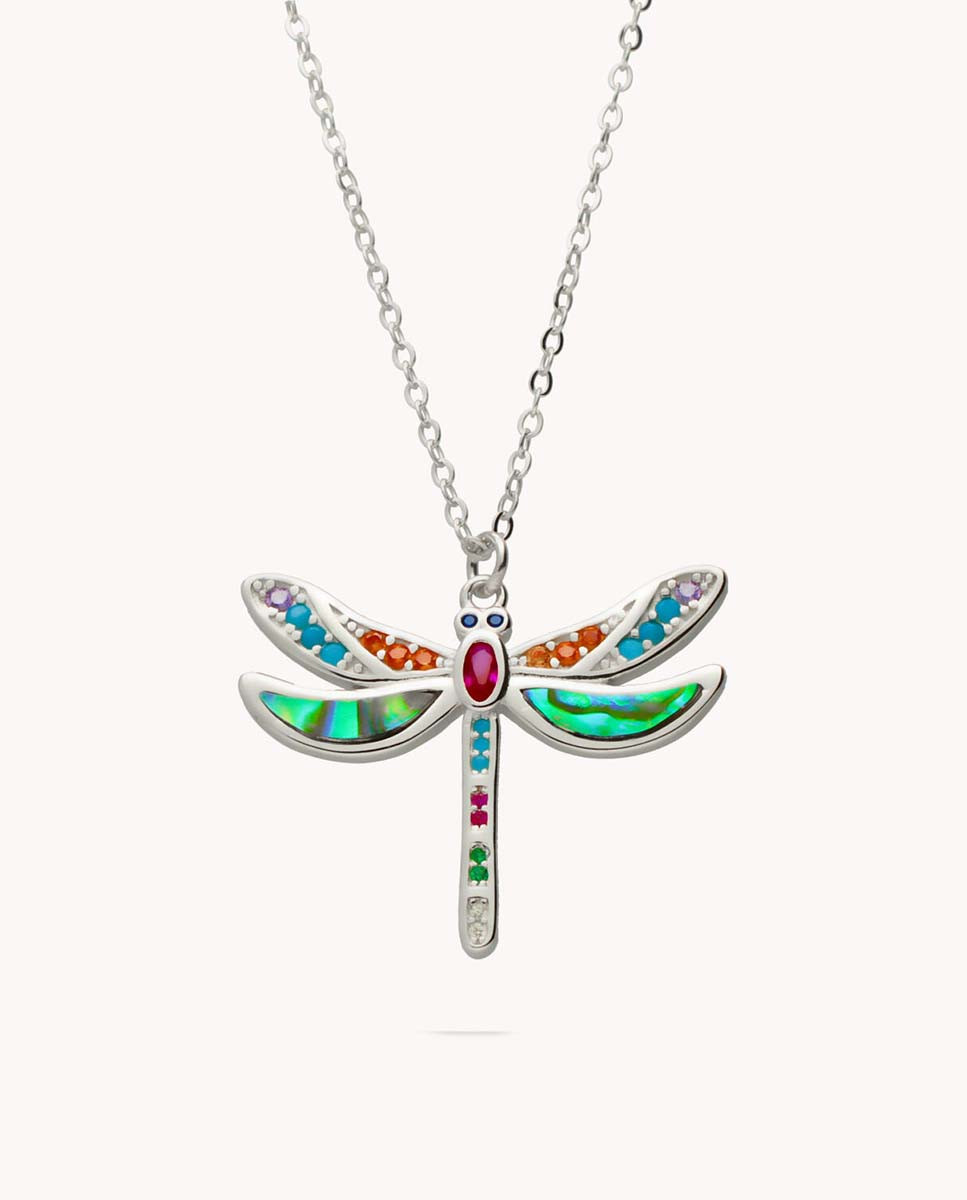 Colgante libélula de colores de plata de ley 925 bañada en rodio