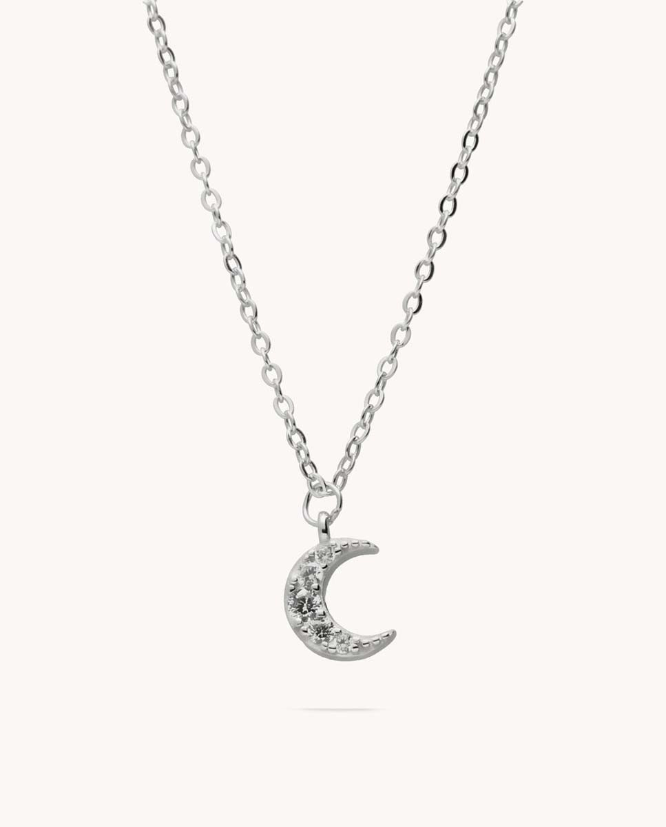 Colgante luna mini destello de plata de ley 925 bañada en rodio