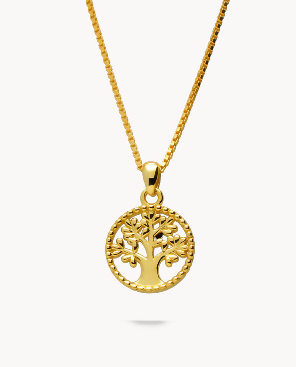 Colgante mini árbol de la vida de plata de ley 925 bañada en oro