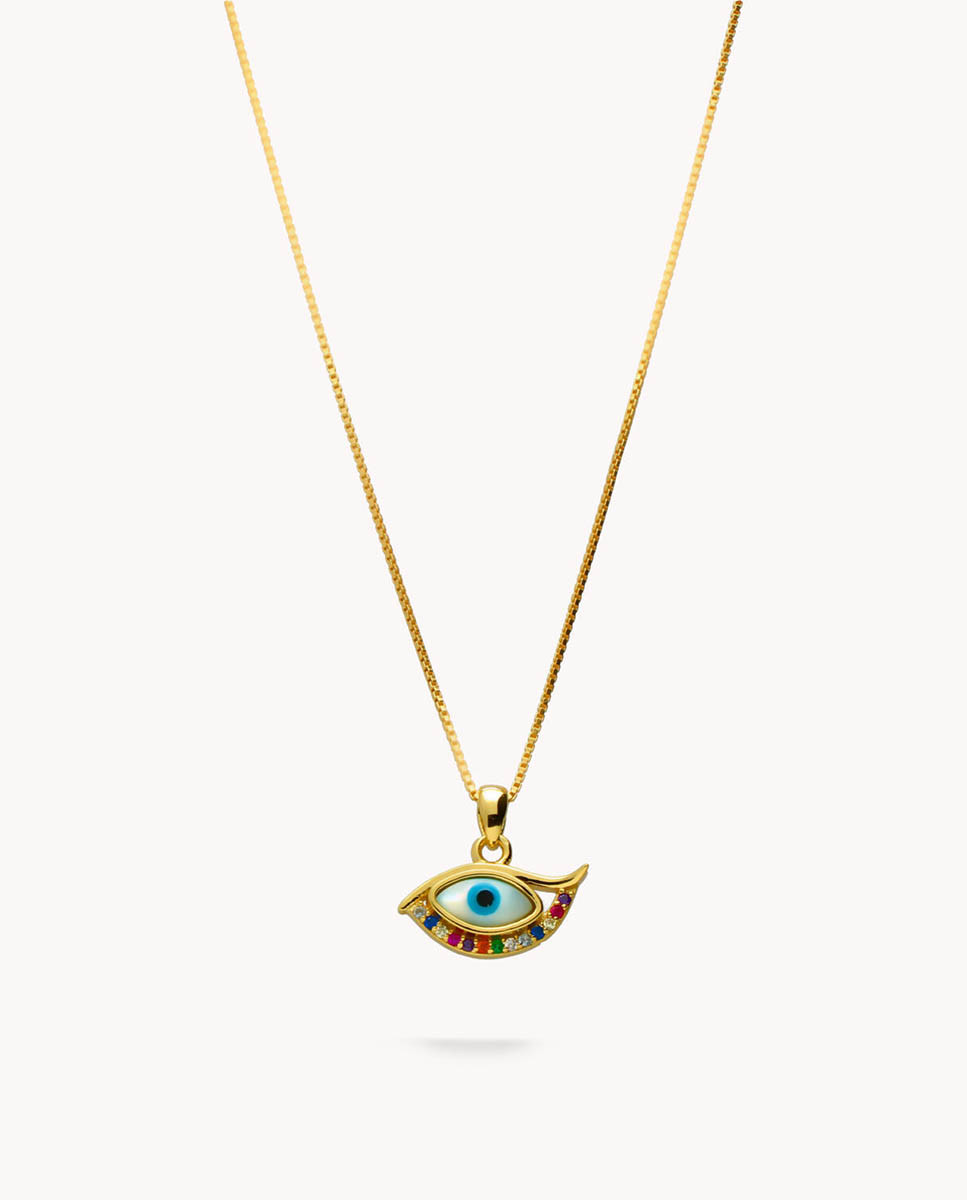 Colgante ojo turco arcoiris de plata de ley 925 bañada en oro