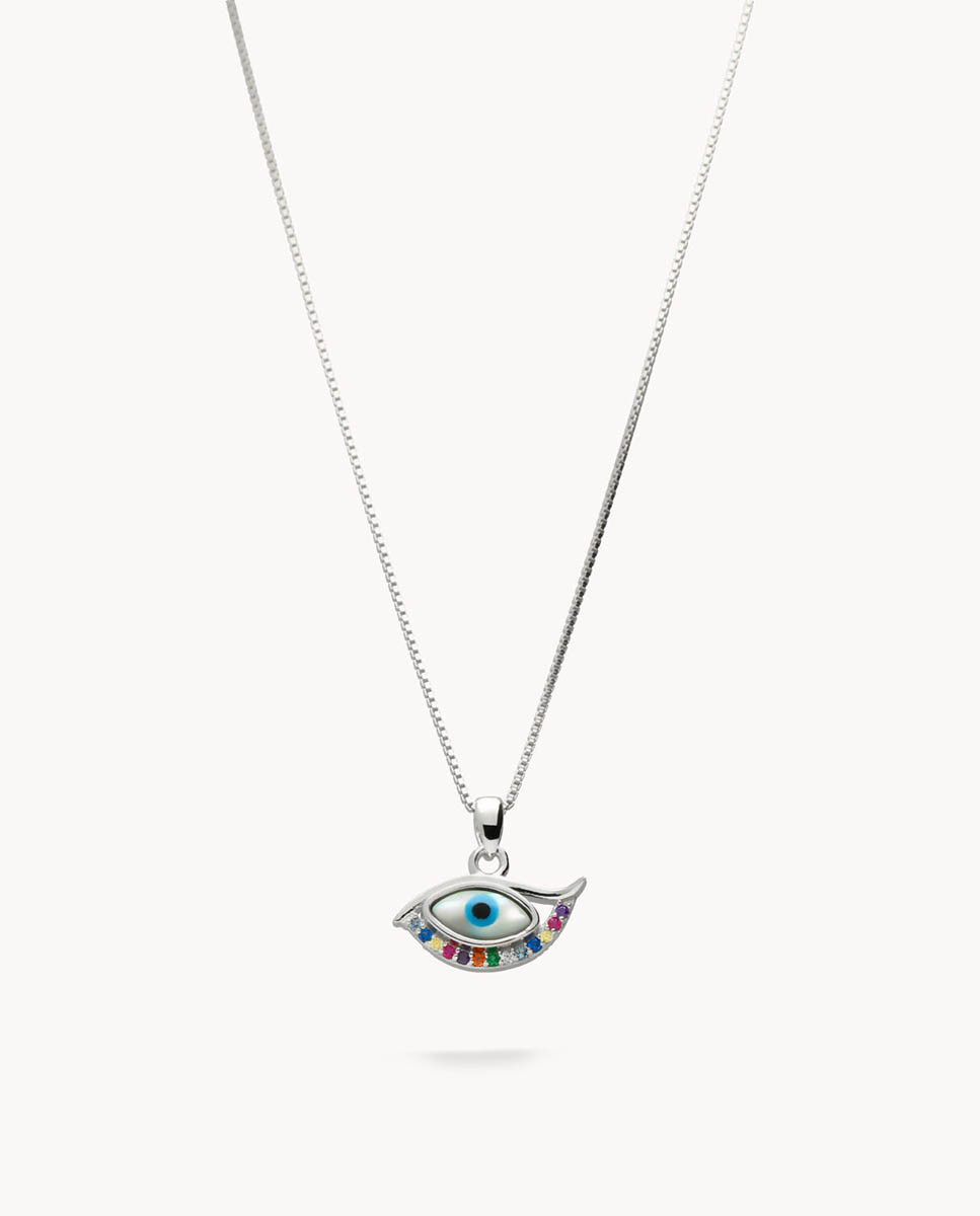 Colgante ojo turco arcoiris de plata de ley 925 bañada en rodio
