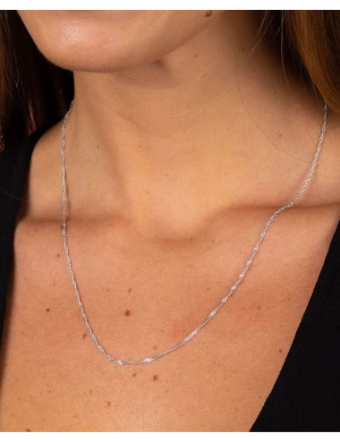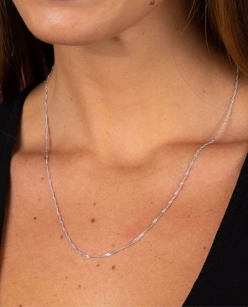 Colgante de plata de ley 925 bañada en rodio con forma de Pintadera Canaria de 25 mm x 25 mm (ancho por alto), con Cadena de plata de ley 925 bañada en rodio con eslabón tipo singapur de 1,5 mm de ancho y 50 cms de largo, cierre de reasa