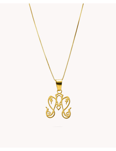 Colgante de plata de ley 925 bañada en oro 18K con virgen de la isla de El Hierro de 20 mm x 20 mm (alto por ancho). Cadena de 45 cms de largo con cierre tipo reasa.