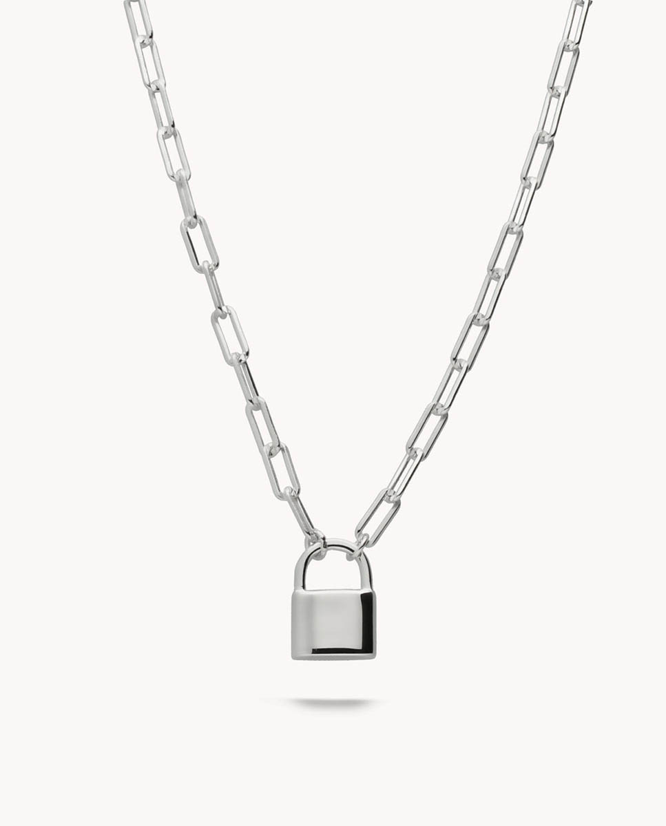 Collar candado en eslabones de plata de ley 925 bañada en rodio