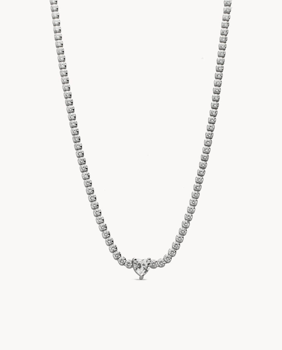Collar corazón riviere de plata de ley 925 bañada en rodio