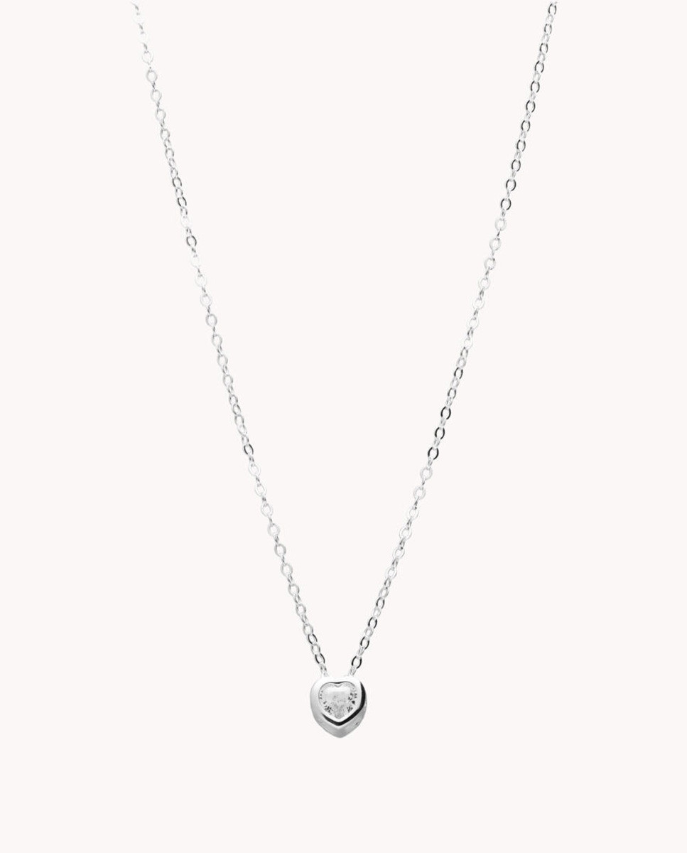 Collar corazon solitario mini de plata de ley 925 bañada en rodio