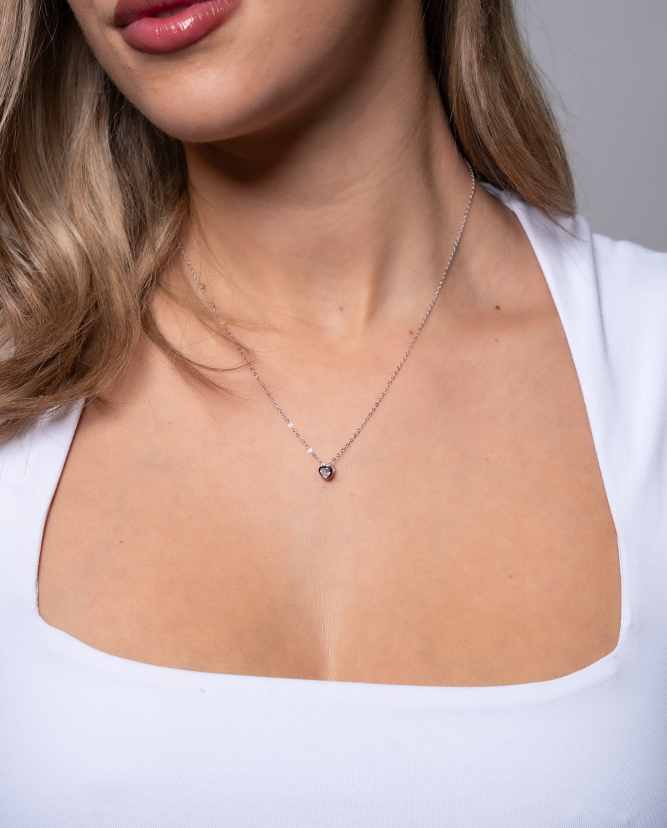 COLLAR OK SILVER CORAZON SOLITARIO MINI DE PLATA DE LEY 925 BAÑADA EN RODIO