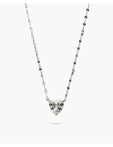 Collar de plata de ley 925 bañada en rodio con corazón de circonita blanca de 9 mm x 9 mm (ancho por alto), largo de 40 cms más 5 cms de alargador y cierre de mosquetón.