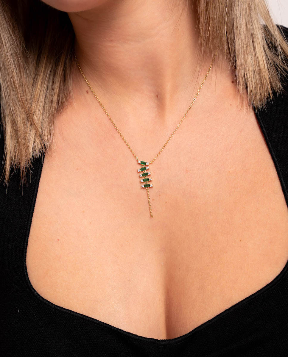 Collar desfiladero esmeralda de plata de ley 925 bañada en oro