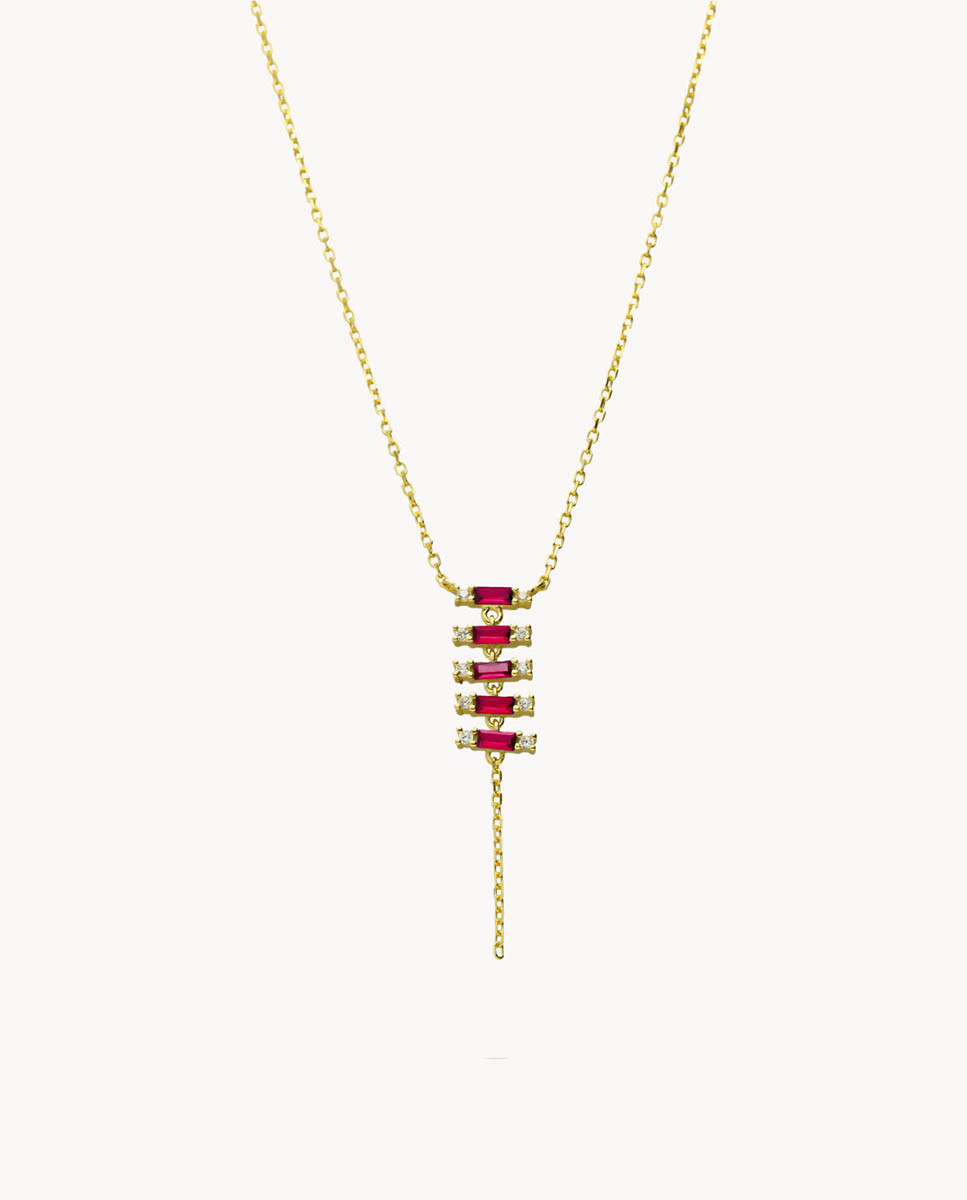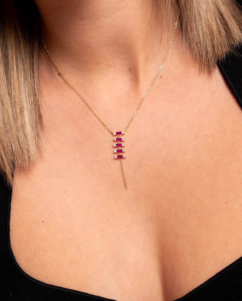 Collar desfiladero rubí de plata de ley 925 bañada en oro