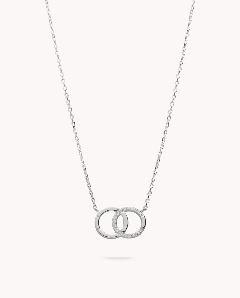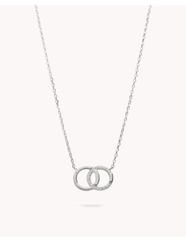 Collar de plata de ley 925 bañada en rodio con colgante doble de karma combinado con circonitas blancas de 15 mm x 10 mm (ancho por alto), cierre de reasa y largo de 40,5 cms más 5 cms de alargador.